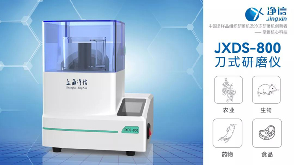 采用上海凈信刀式研磨儀JXDS-800 對樣品進(jìn)行預(yù)處理, 可以進(jìn)一步提高樣品的均一化程度, 更好地保留分析目標(biāo)化合物, 為食品樣品中待測組分的提取、凈化、濃縮, 進(jìn)行定量、定性分析檢測做好充分準(zhǔn)備, 保證結(jié)果的準(zhǔn)確性和重現(xiàn)性。